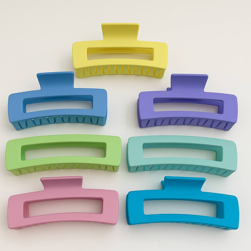Clame de păr colorate mate – energie, stil și fixare sigură Adaugă un strop de culoare coafurii tale cu aceste clame de păr mate în culori vii, perfecte pentru zilele în care vrei să ieși în evidență sau să-ți exprimi personalitatea prin detalii jucăușe. Aceste clești de păr mari sunt rezistenți, comozi și potriviți pentru orice tip de păr.