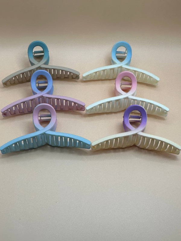 Clame de păr ombré pastel – model răsucit X pentru un look fresh și feminin Adaugă un plus de culoare și rafinament coafurii tale cu aceste clame de păr în formă de X, cu efect ombré pastelat. Designul delicat și modern le face perfecte pentru zilele de vară, festivaluri sau ținute casual-chic. Culorile diafane în degrade creează un efect vizual plăcut, iar fixarea este sigură și confortabilă.