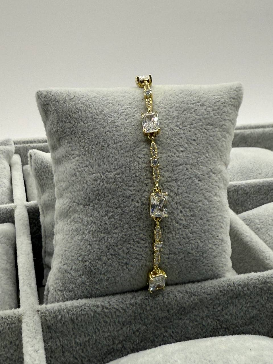 O brățară rafinată, cu alternanță de pietre mari și mici transparente, fixate într-o montură delicată. Ușoară și confortabilă, este ideală pentru evenimente festive, nunți și apariții de seară. Strălucirea intensă a pietrelor oferă un plus de eleganță și atrage privirile admirative.