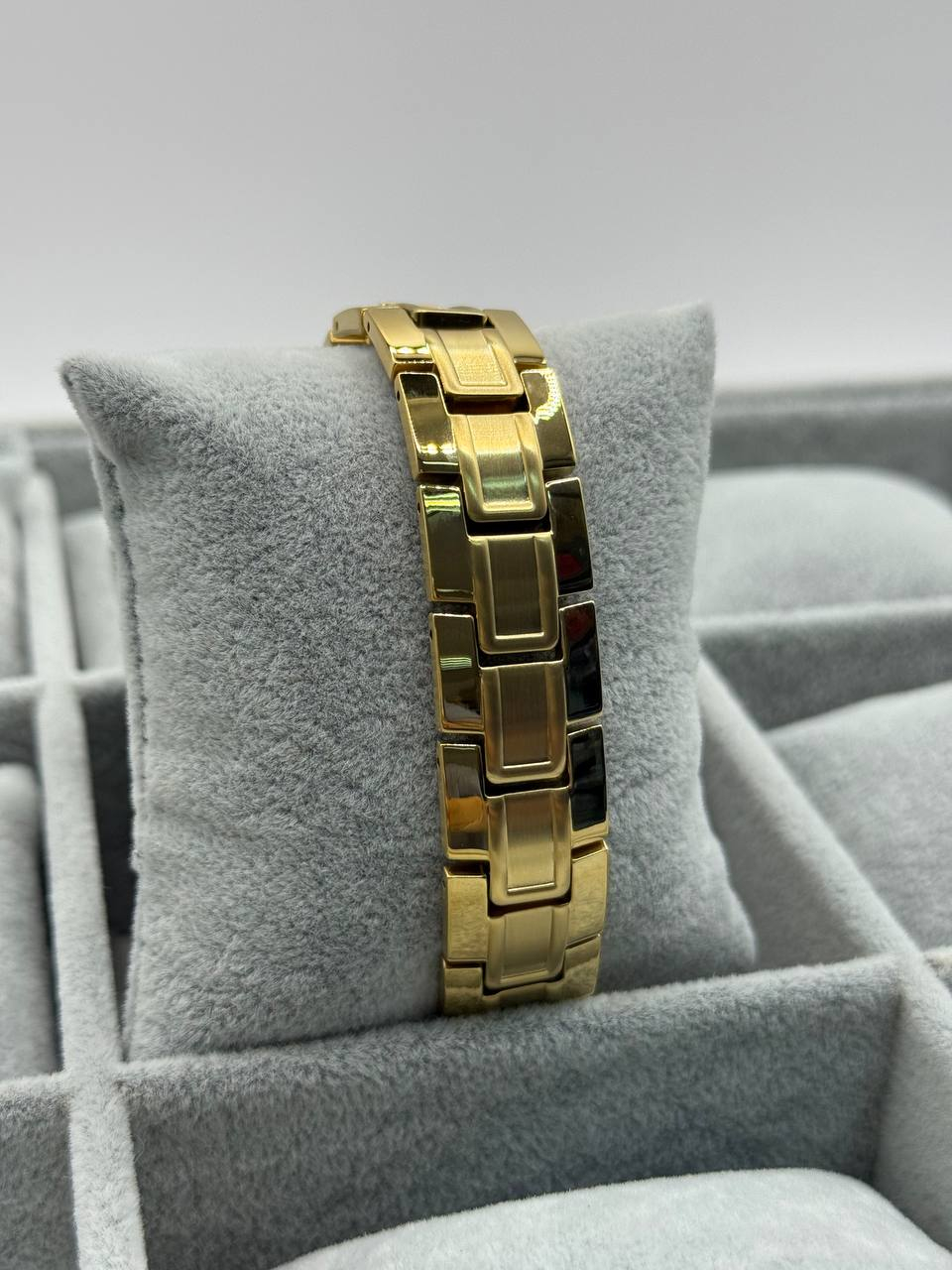 Brățară elegantă pentru bărbați, cu zale late și acoperire tip aur. Designul modern și construcția rezistentă o fac ideală pentru purtare zilnică sau ocazii speciale. Ușoară și confortabilă, subliniază stilul și rafinamentul celui care o poartă. Un cadou perfect pentru bărbatul care apreciază eleganța și calitatea.