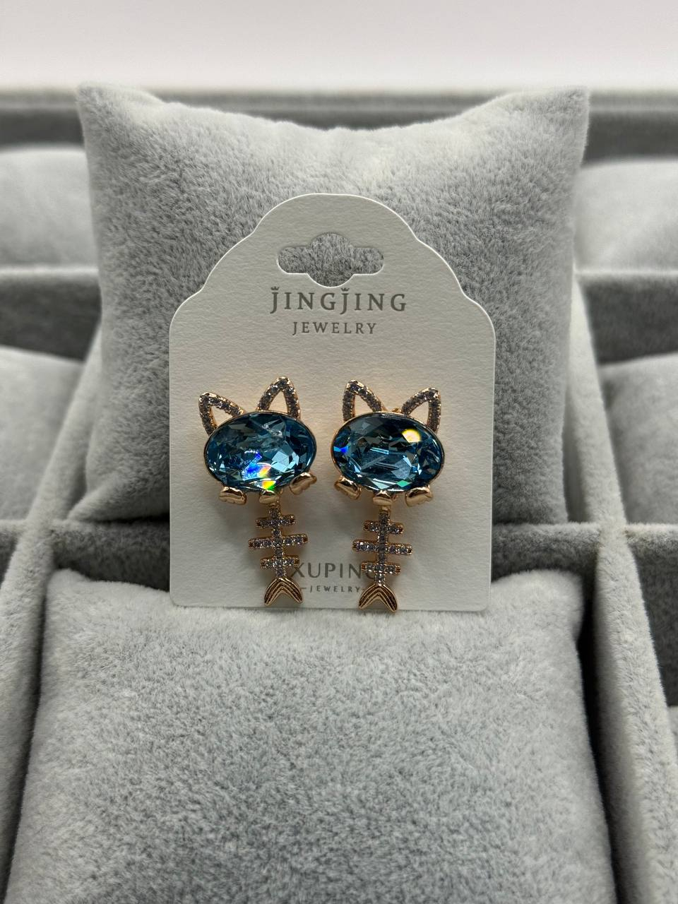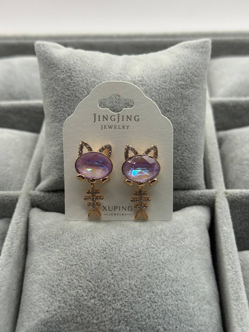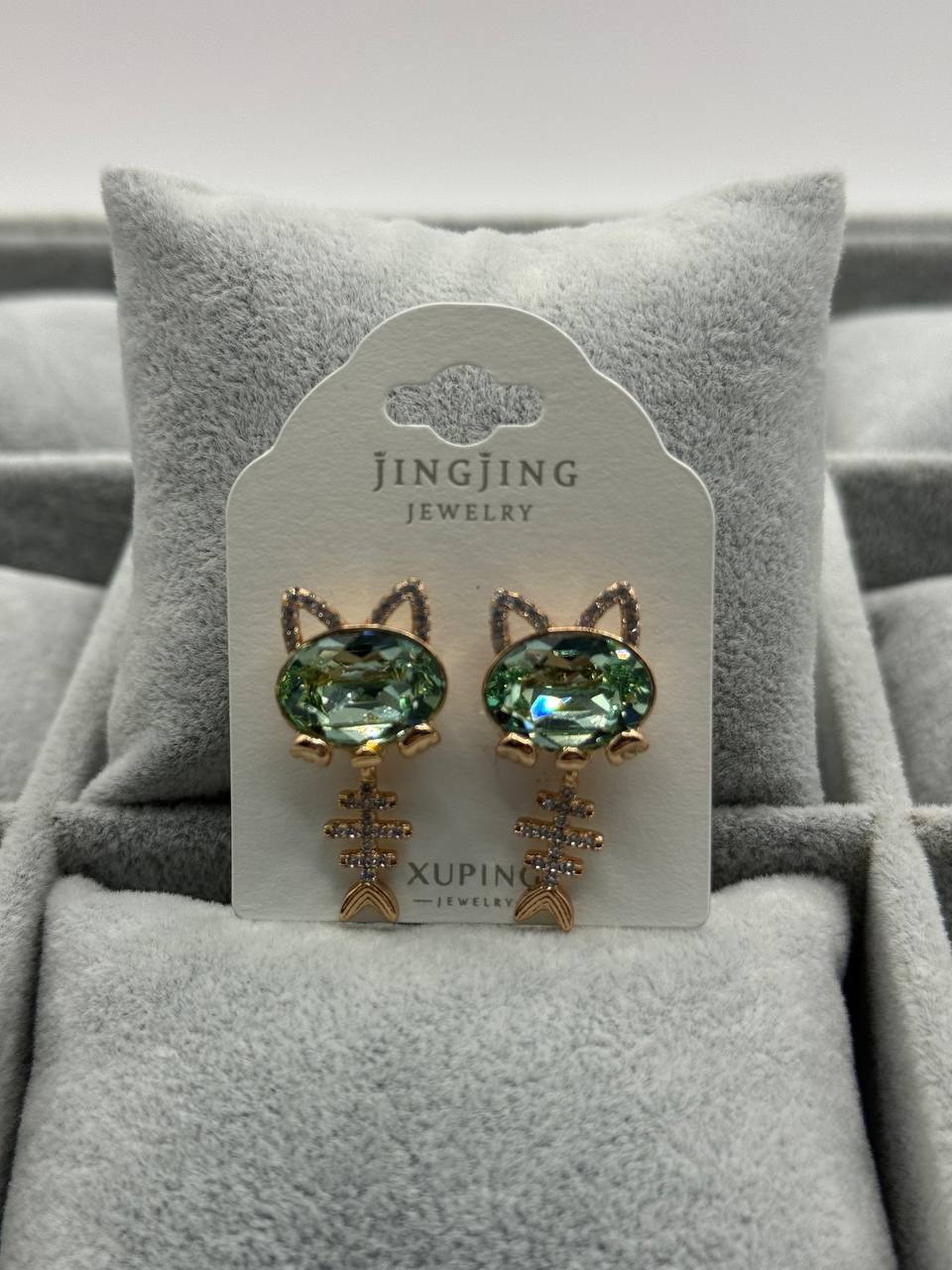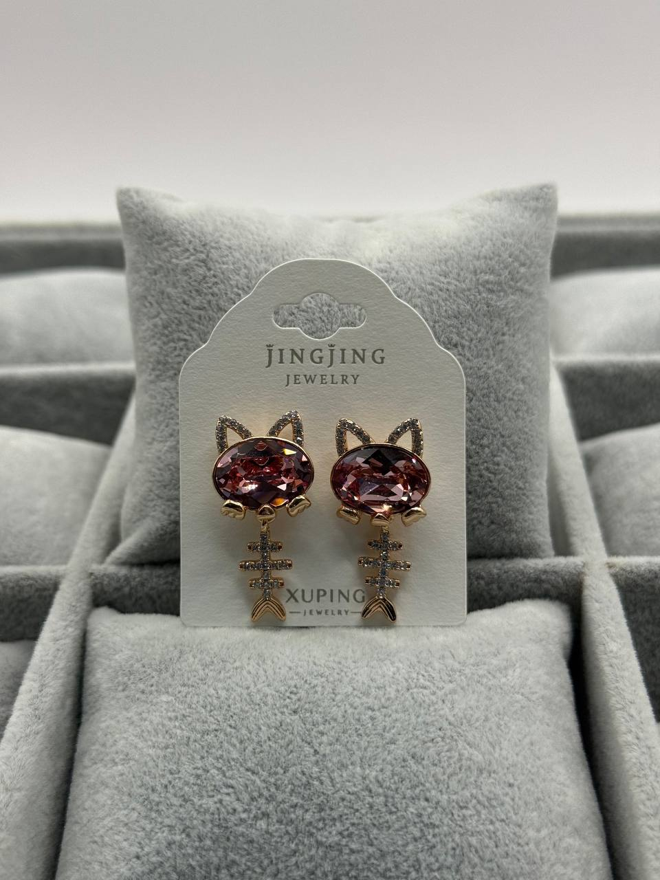 Cerceii moderni Xuping în formă de pisică cu cristale sunt o bijuterie elegantă, care nu se înnegrește și își păstrează strălucirea mult timp. Designul original, cu urechiușe și pandantiv în formă de peștișor, oferă un aspect jucăuș și deosebit.