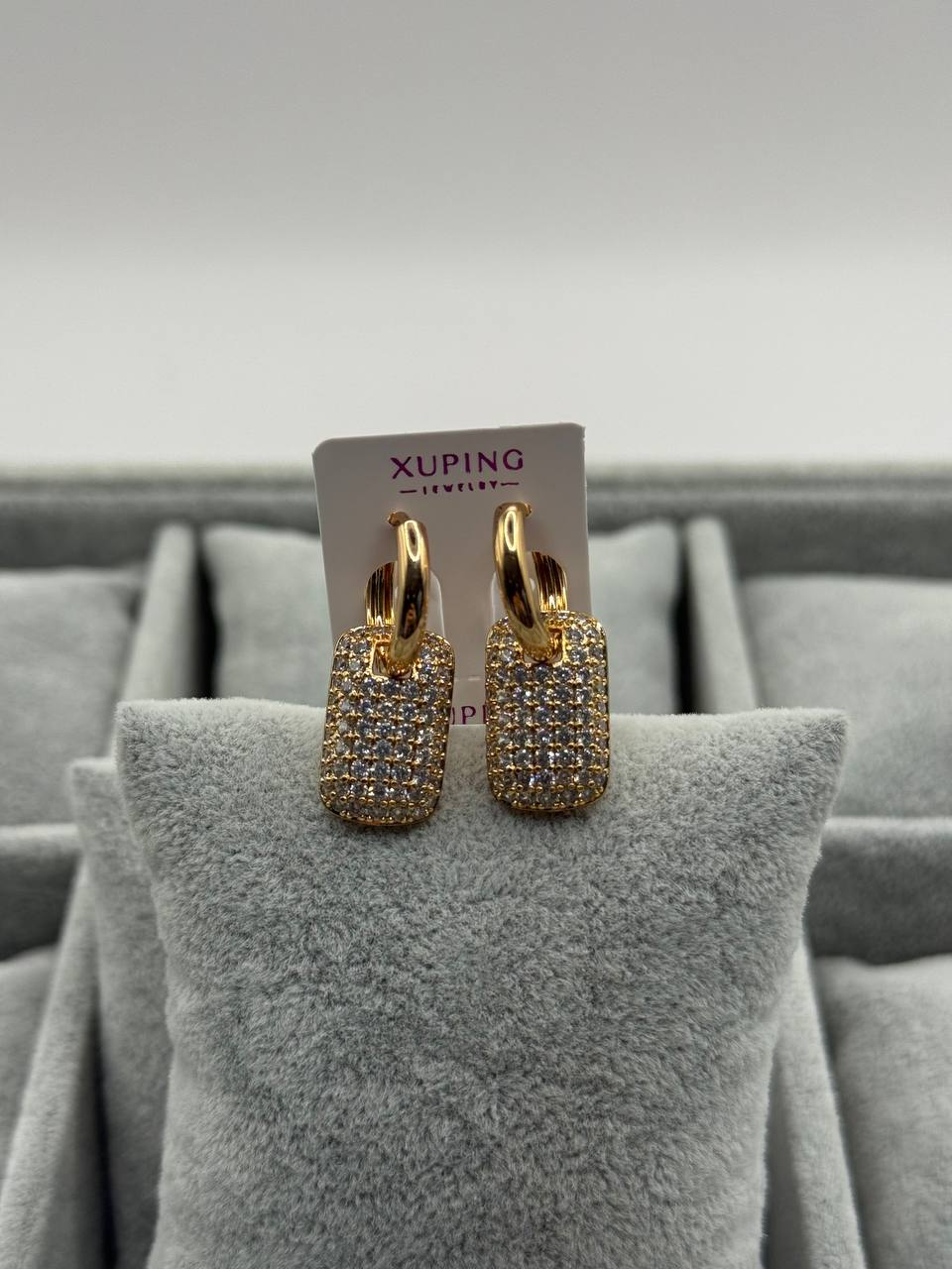 Cerceii eleganți Xuping, decorați cu un pandantiv dreptunghiular acoperit cu cristale, sunt un accesoriu rafinat și modern. Realizați din bijuterie de calitate, acești cercei nu se înnegresc și își păstrează frumusețea în timp.