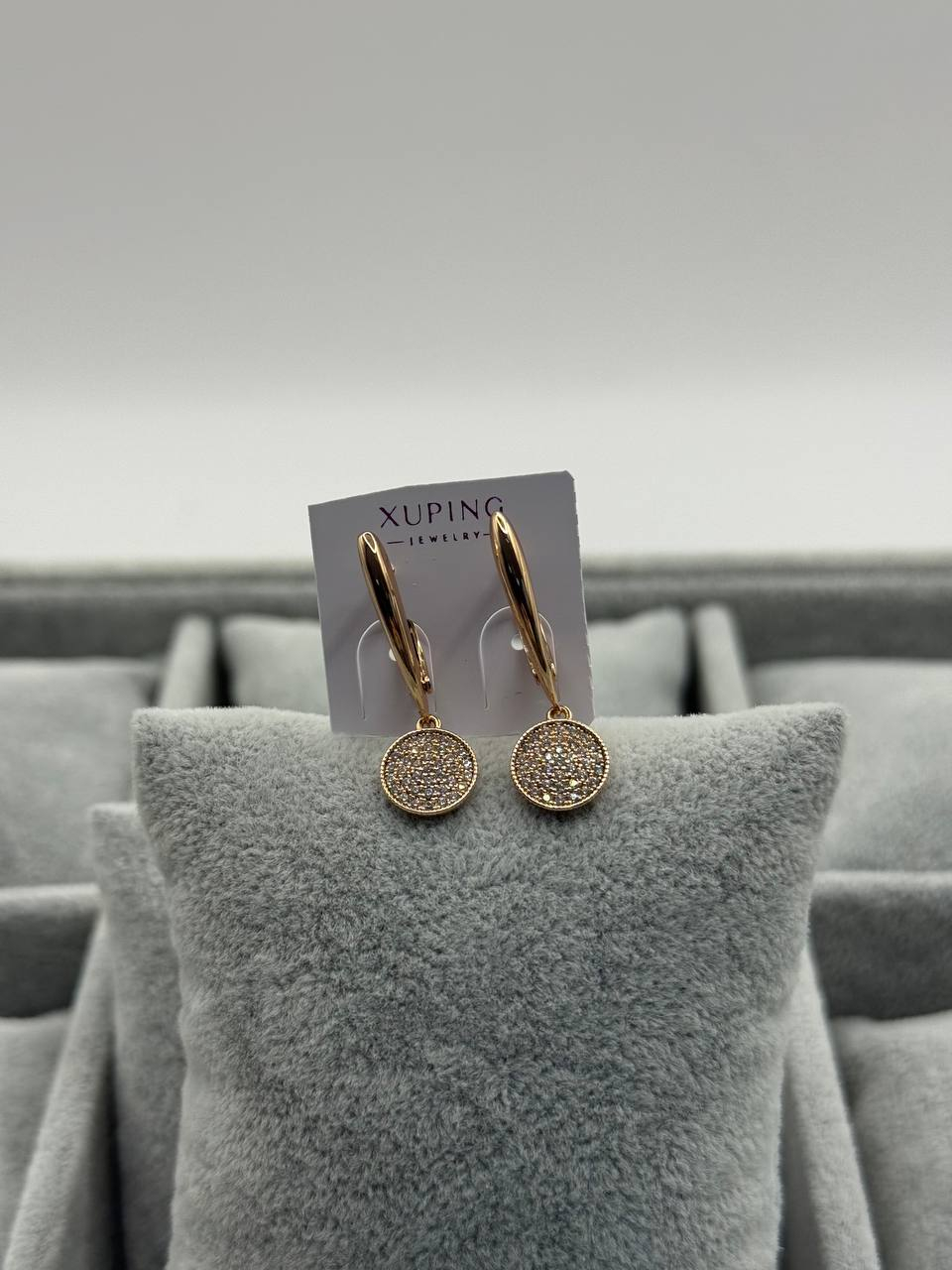 Cercei eleganți Xuping Jewelry cu pandantiv rotund – un accesoriu versatil pentru orice ținută. Realizați din bijuterii de calitate, nu se înnegresc și își păstrează strălucirea mult timp, chiar și la purtare zilnică. Potriviți atât pentru stil casual, cât și pentru ocazii speciale.