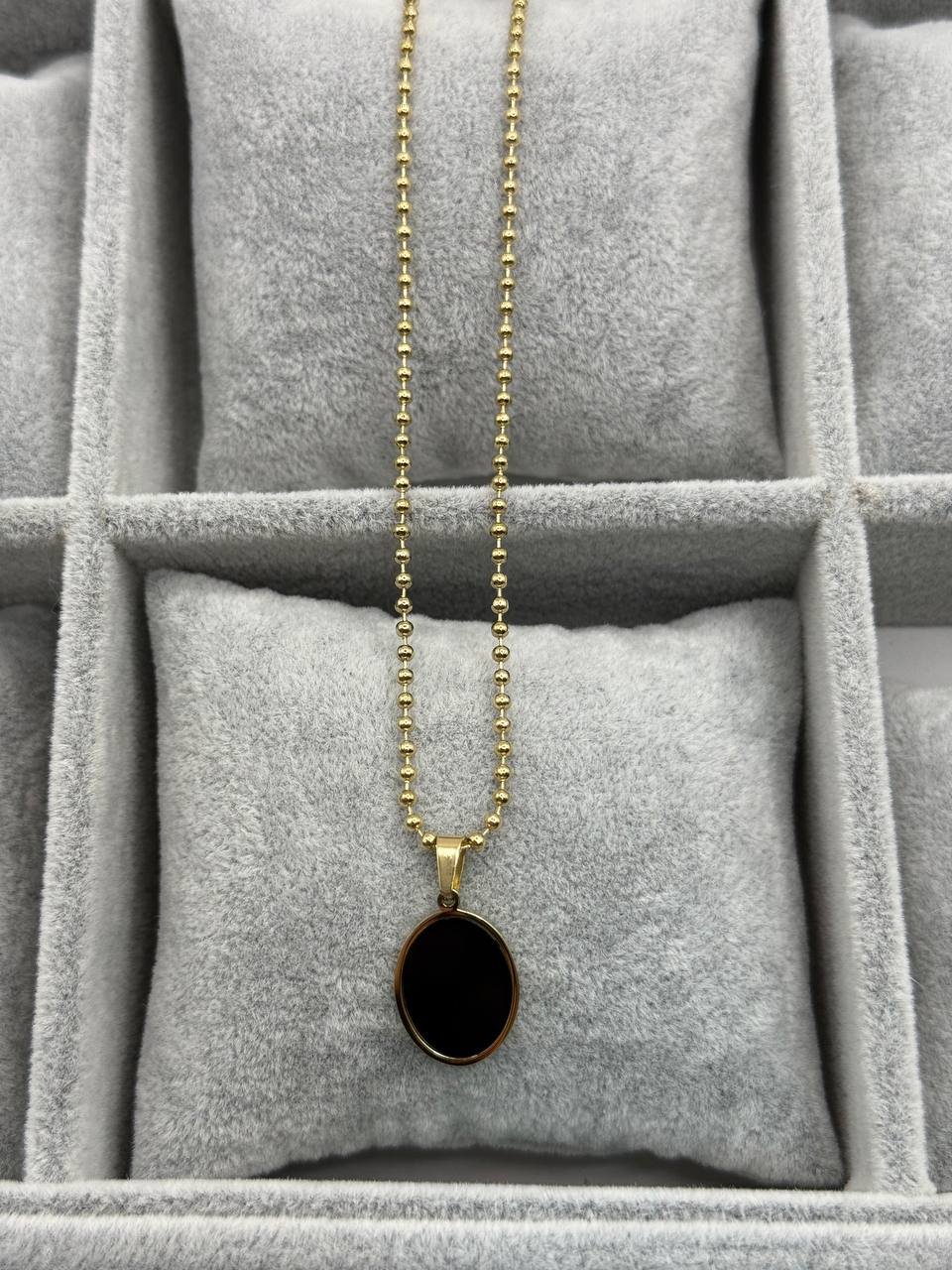 Pandantiv elegant cu piatră ovală, pe un lănțișor original cu biluțe fine. Un accesoriu modern și rafinat, perfect pentru a completa orice ținută, de zi sau de ocazie. O alegere inspirată de cadou pentru fete și femei. Lănțișorul este ușor, comod de purtat și nu se înnegrește în timp.