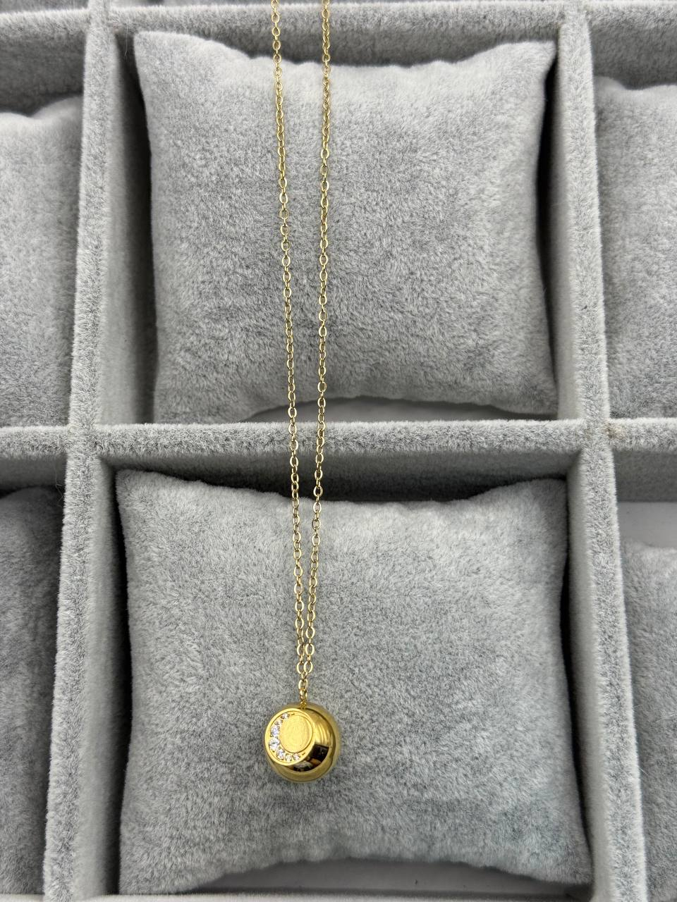 Pandantiv elegant pentru femei, cu un cerc decorat cu pietre fine, pe un lănțișor delicat. Un accesoriu modern, care completează perfect atât ținutele de zi cu zi, cât și pe cele de ocazie. Lănțișorul este ușor, comod de purtat și nu se înnegrește în timp. O alegere inspirată de cadou pentru fete și femei.