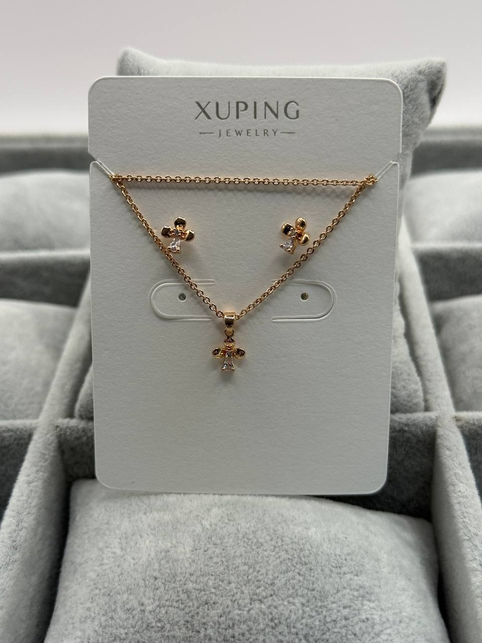 Set elegant Xuping Jewelry – pandantiv cu lanț și cercei cu inserții dreptunghiulare. Designul modern și forma rafinată fac ca acest set să fie un accesoriu versatil, perfect pentru ținutele de zi și pentru ocazii festive. Bijuteria este de calitate superioară, nu se înnegrește și își păstrează strălucirea în timp.