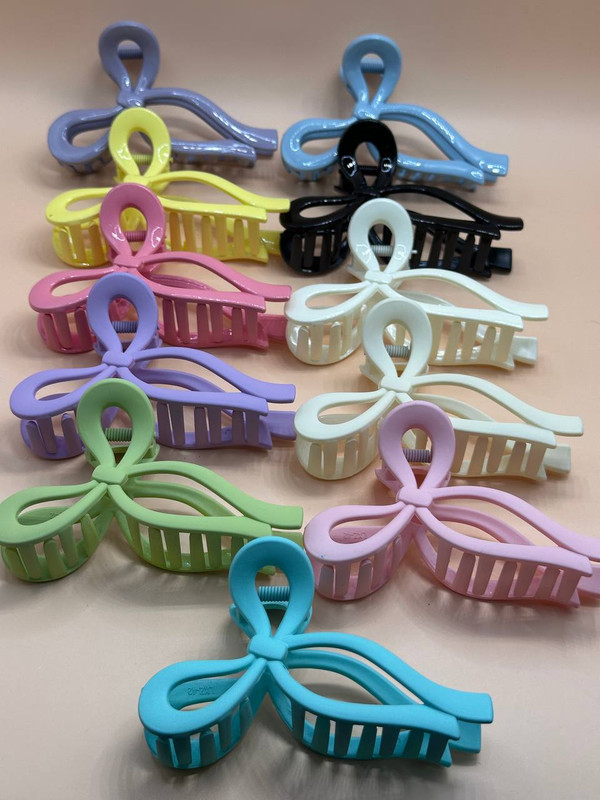 Clame de păr fundiță – design feminin și culori pastel lucioase & mate Creează coafuri jucăușe și elegante cu aceste clame de păr în formă de fundiță, disponibile în variante mate și lucioase. Designul delicat, dar modern, oferă un look fresh și romantic, perfect pentru primăvară, vară sau ocazii speciale. Fixare fermă, fără disconfort. ✔️ Formă unică de fundiță 3D, feminină și ușor de purtat ✔️ Variante cu finisaj mat soft-touch sau luciu elegant ✔️ Culori diverse: roz, lila, galben, verde, turcoaz, alb, negru, crem, albastru pastel etc. ✔️ Potrivite pentru păr lung, mediu sau subțire ✔️ Ideală pentru femei, fete și adolescente care adoră detalii cute