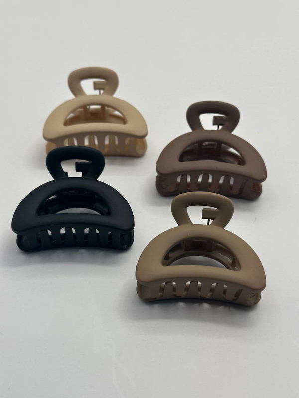 mini-clame în culori nude – stil minimalist Elegante, simple și ușor de asortat – aceste mini-clame în nuanțe nude sunt alegerea perfectă pentru coafuri de zi cu zi. Potrivite atât pentru păr scurt cât și pentru prinderea șuvițelor. 🌿 Culori incluse: crem, cafeniu deschis, maro, negru mat 📐 Dimensiune: ~4 cm ✔️ Design mat și curbat – pentru o fixare fermă și stil modern ✔️ Potrivite pentru stiluri casual sau office