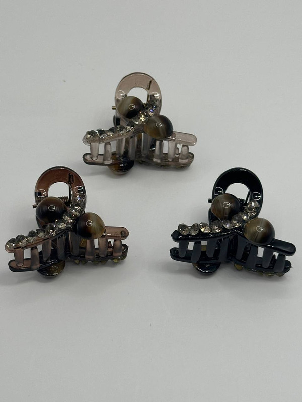 Clame mici cu biluțe lucioase și strasuri – detaliul chic care schimbă totul Adaugă o notă rafinată și modernă coafurii tale cu aceste mini-clame decorate cu biluțe sidefate în tonuri de maro și șirag de cristale strălucitoare. Design compact și stilat, perfect pentru a fixa șuvițele cu eleganță. 🔹 Design: biluțe cu aspect de ochi de tigru + cristale 🎨 Culori: negru, bronz, bej transparent 📐 Dimensiune: ~4 cm 💎 Stil: elegant-glam, ideal pentru birou, petreceri sau ținute de zi cu zi ✔️ Prindere sigură, material rezistent 💡 Poți purta una singură pentru un accent subtil sau în pereche pentru un look echilibrat și feminin.