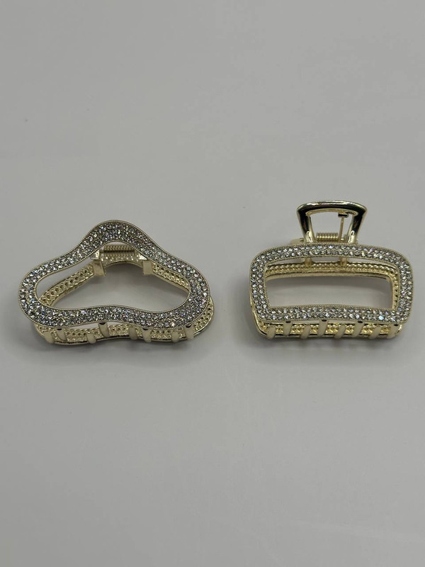 Clame aurii cu strasuri – Glamour Touch ✨ Adaugă un strop de strălucire în coafura ta! Aceste clame aurii sunt împodobite cu strasuri fine care reflectă lumina discret, oferindu-ți un look rafinat și sofisticat. 💎 Disponibile în 2 forme: • Formă val (fluidă, feminină) • Formă dreptunghi (modernă, geometrică) 📏 Dimensiune: aproximativ 6–7 cm 🌟 Stil: elegant, glam 📍 Perfecte pentru: evenimente, petreceri, look de seară sau o ținută specială de zi 🔒 Fixare puternică – potrivite pentru toate tipurile de păr