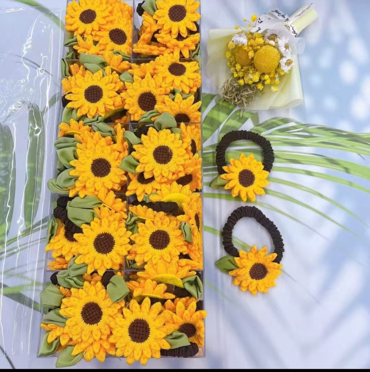 Un elastic adorabil decorat cu o floare de floarea-soarelui din material textil. Design voluminos, culori vii și detalii realiste – perfect pentru look-uri de vară, fetițe sau ședințe foto. Banda elastică este moale și rezistentă, potrivită pentru orice tip de păr.