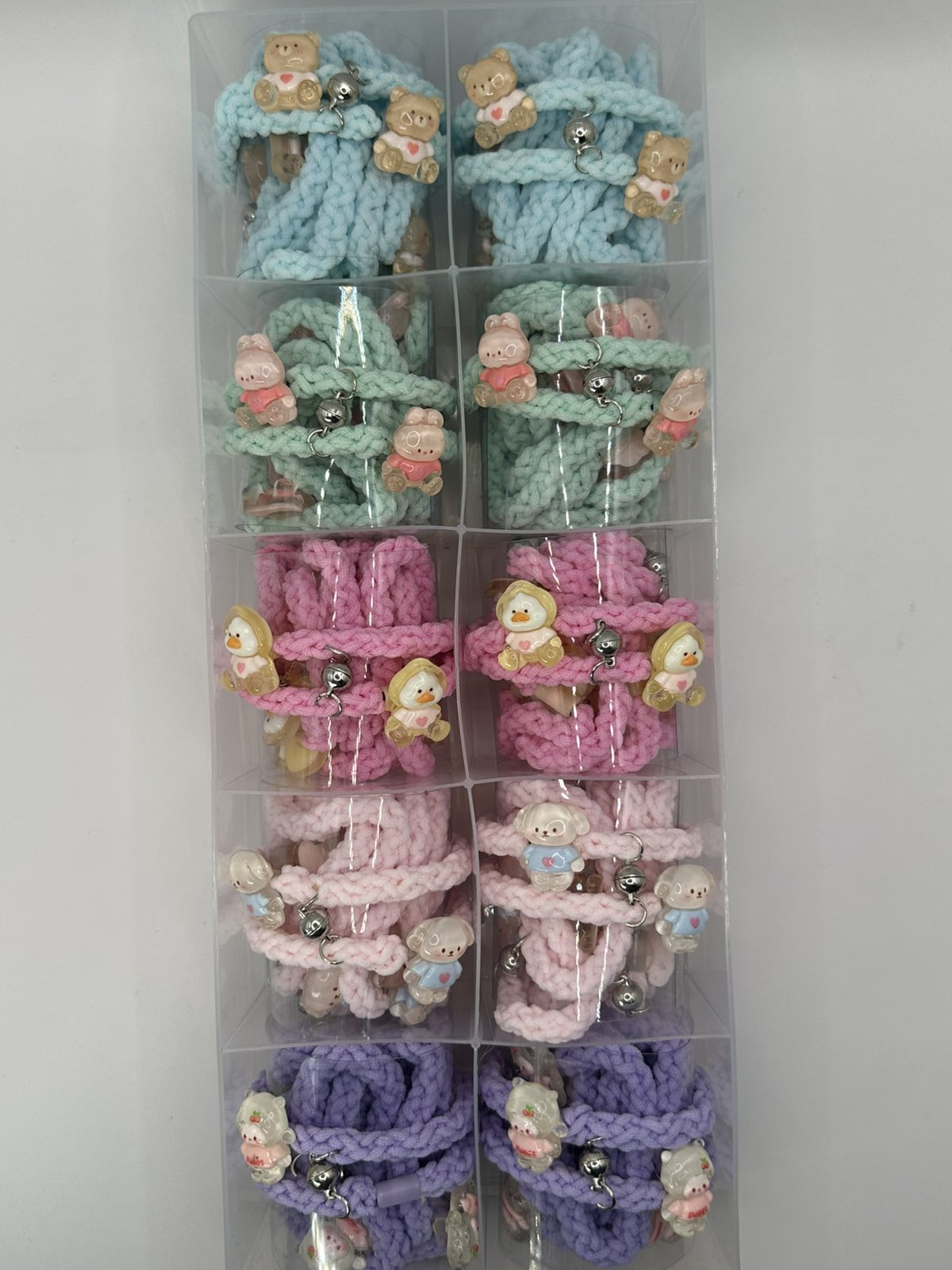 Elastice roz împletite, decorate cu rățuște simpatice — un accesoriu adorabil pentru fetițe.