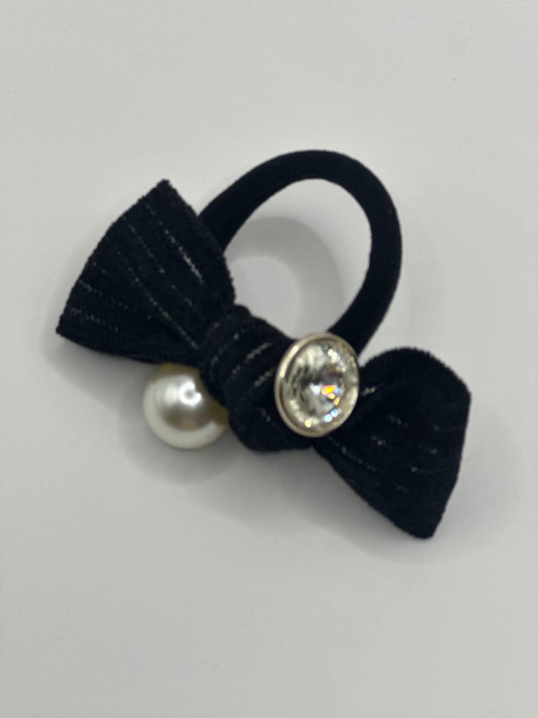 Elastic de păr cu fundiță, perlă și cristal transparent
