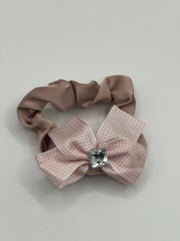 🎀 Fundiță roz cu model în carouri și stras strălucitor în centru
