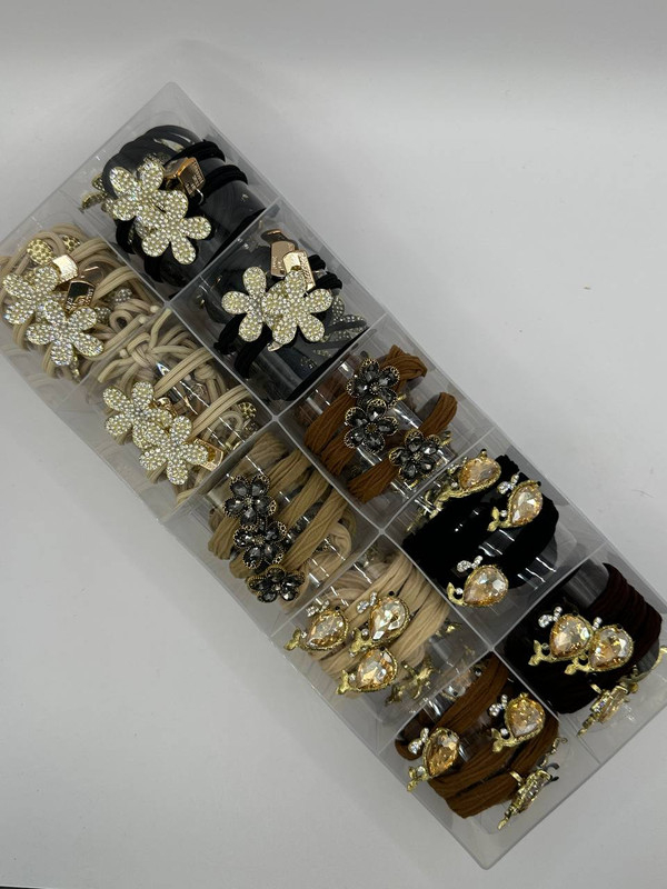 elastice de păr cu design elegant – flori, pietre, fundițe și detalii metalice Descoperă colecția noastră de elastice de păr premium, disponibile în culori clasice precum negru, maro și bej, decorate cu flori, fundițe, pietre strălucitoare și elemente metalice aurii. Aceste accesorii sunt perfecte pentru un look îngrijit, elegant și stilat – fie că le porți la birou, la școală sau la un eveniment special. ✔️ Designuri diverse: flori cu cristale, fundițe, modele retro, detalii aurii ✔️ Culori versatile – negru, maro ciocolată, bej cald ✔️ Fixare rezistentă și confortabilă ✔️ Potrivite pentru femei, adolescente și fetițe mai mari ✔️ Accesoriu ideal pentru coafuri simple sau sofisticat