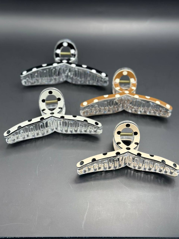 Тренд сезона! Прозрачный крабик с оригинальным узором в горошек — стильный и удобный аксессуар для любой причёски. Легко фиксирует волосы, подходит для любого типа.