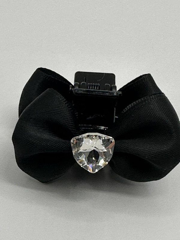 Эта стильная заколка-бантик в чёрном цвете с крупным прозрачным стразом в виде сердца станет эффектным акцентом в любой причёске. Идеально подходит для девушек и женщин, которые ценят стильные аксессуары с ноткой романтики.