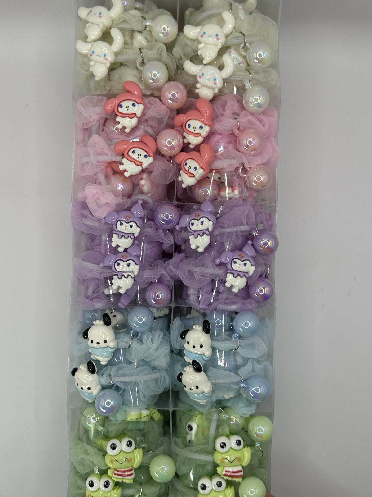 Мягкая резинка из розовой органзы, украшенная милым персонажем в стиле My Melody и блестящей розовой бусинкой.