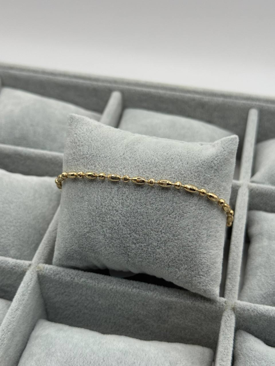 Элегантный ювелирный браслет-из-овальных-бусин в золотистом оттенке — утончённый акцент для любого образа. Мелкие овальные бусины с чувством объёма и отражения света создают благородный, но при этом лёгкий дизайн. Подходит как для ежедневного ношения, так и для торжественных случаев, прекрасно сочетается с другими украшениями и многослойностью.