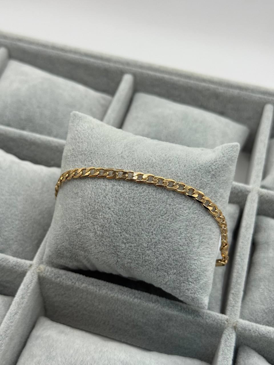 Утончённый цепочный браслет-в-золотом-оттенке с классической плоской звеньевой фактурой — прочное и стильное украшение, которое подойдёт как мужчинам, так и женщинам. Его сдержанный блеск и лаконичный дизайн делают аксессуар универсальным: идеален для ежедневного ношения, а также отлично впишется в образ для особых случаев.