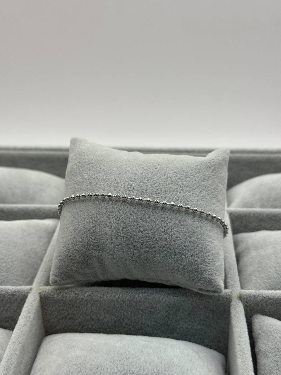 Тонкий браслет‑из‑серебряных‑бусин — это универсальное украшение, которое подчеркнет стиль и элегантность. Изящные бусины типа 3 мм из стерлингового серебра нанизаны на эластичную основу, что делает браслет удобным для повседневной носки. Он легко надевается и снимается, и прекрасно подходит как для моно ношения, так и для стильной многослойной комбинации