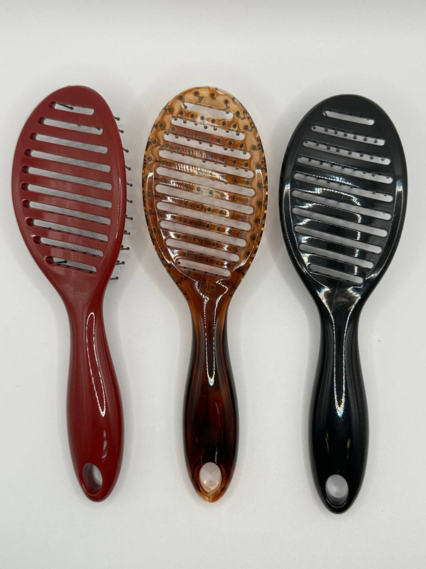 Щётка с отверстиями для вентиляции идеально подходит для сушки феном — помогает равномерно распределить воздух, ускоряя укладку. Шарики на концах зубьев мягко массируют кожу головы, улучшая кровообращение. Подходит для всех типов волос. В наличии в трёх расцветках: чёрная, бордовая и карамельная.