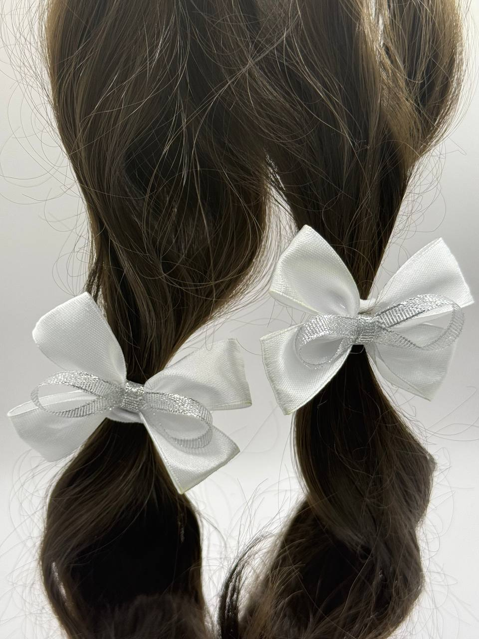 Набор белых резинок для волос с бантиками из атласной ленты — нежный и стильный аксессуар для школы, утренников и праздничных мероприятий. Белые бантики с серебристым акцентом добавляют образу изящества и аккуратности. Резинки мягко фиксируют волосы, не повреждая их, подходят для хвостиков и косичек, для длинных и средних волос. Идеально подойдут для девочек и девушек, которые ценят красоту и комфорт каждый день.