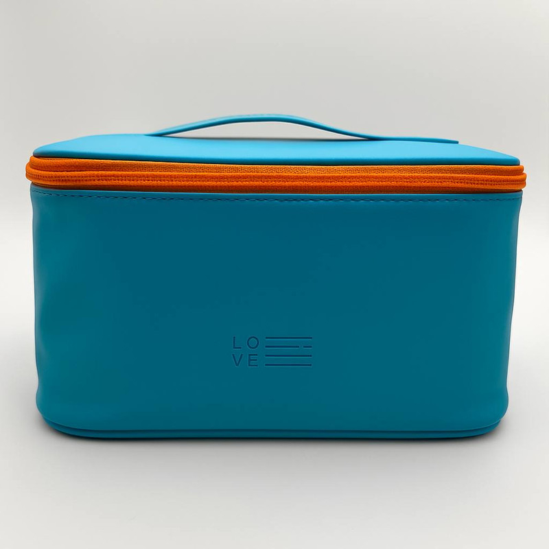 Geantă de cosmetice albastru neon cu fermoar portocaliu – LOVE edition Un model compact, vesel și super practic pentru călătorii sau organizare zilnică. Este realizată dintr-un material ușor de curățat, cu imprimeu minimalist „LOVE” și mâner integrat în capac pentru transport facil. 🔹 Caracteristici: • Culoare vibrantă: albastru cu fermoar portocaliu • Inscripție discretă „LOVE” în relief • Mâner pe capac pentru portabilitate • Material rezistent și ușor de întreținut • Interior spațios – perfect pentru cosmetice, produse de igienă, medicamente sau accesorii mici 📏 Dimensiuni aprox.: 21 x 13 x 12 cm 🎨 Culoare: Albastru electric & portocaliu